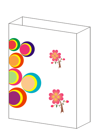 第五步:用钢笔工具勾出购物袋的提绳,一个放在最前,一个放在最后,为好看期间可给最前面绳子加两朵小花,可以在把小花装饰在其余地方