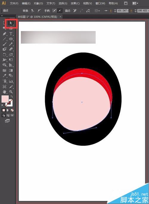 3、先选择工具箱中的选择工具,在空白处点击一下;再选择椭圆工具,将填充设置为红色,画一个椭圆;选择工具箱中的选择工具,选中这个红色的椭圆,按住Alt键不放,点击拖动可以复制一个椭圆,向下移到合适的位置。