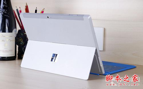 微软Surface 3一体式支架也有些缩水,只剩打开三个角度,基本涵盖用户日常使用所需要的角度。平板背面有两个凹槽,方便支架打开支架打开30度后阻力增大,如果需要更大的角度需在支架中间用力,否则支架容易变形。