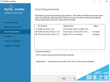 在检查要求(CheckRequirements)界面,点击“Execute”检查是否达到安装的要求,通过检查要求后点击“next‘