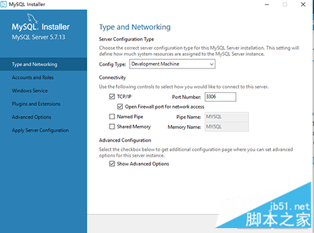 在MySQL服务配置(MySQLServerConfiguration)界面,勾选Show Advanced Options,其他的默认不做修改,点击“next”。