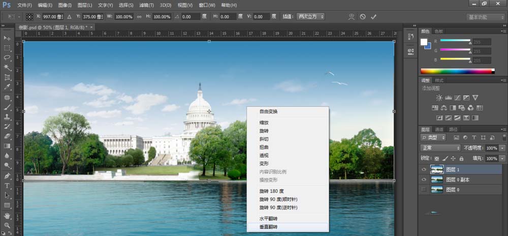 ps怎么给建筑物添加水上倒影?