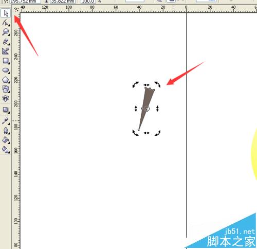 14、用选择工具,双击三角形,并且把三角形的角度调成如下图的效果。