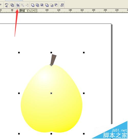 16、接着,将两个图形都选择,再点击属性栏的“群组”按键,将图形进行群组。到这里,一个让人看到都流口水的雪梨就已经做好了。