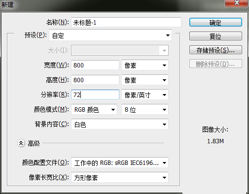 二、新建一个画板,800*800像素