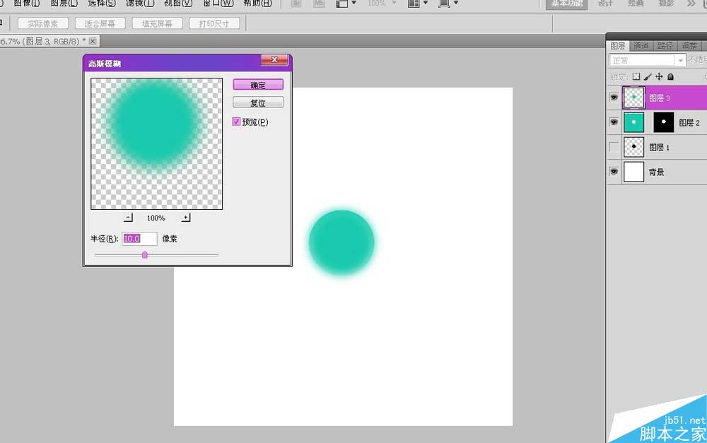 7、给图层3执行模糊处理,滤镜——模糊——高斯模糊。然后将其往下移动。