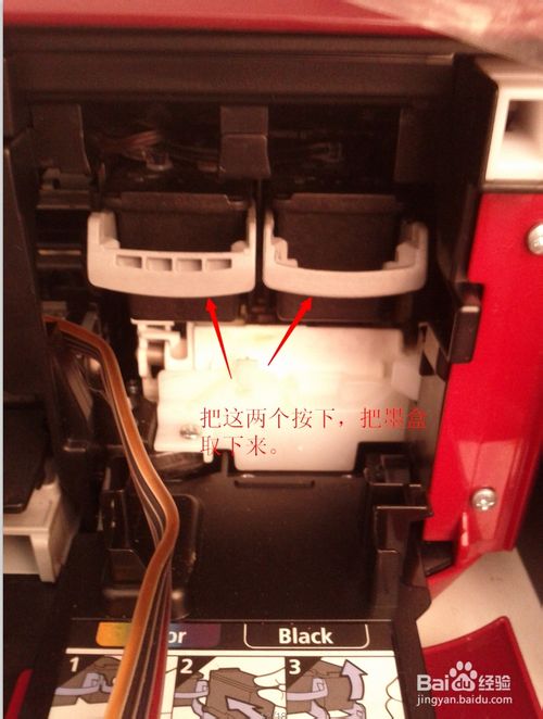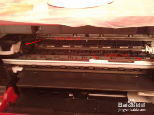 把管线先顺进去,放好,最后把墨盒放进去。把卡子搬上去卡好。