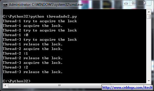 print (threading.currentThread().getName() + ' try to acquire the lock')