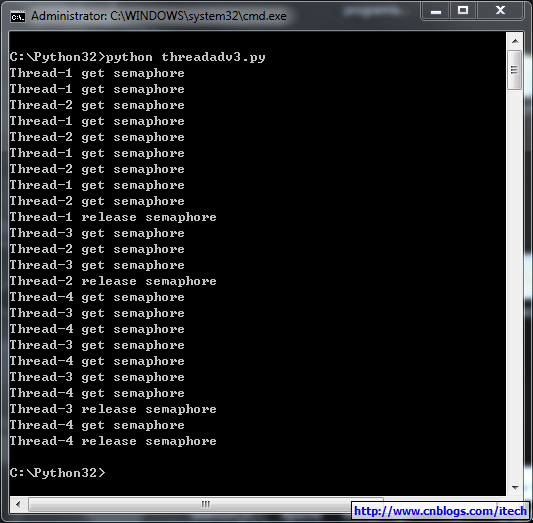 print (threading.currentThread().getName() + ' get semaphore')