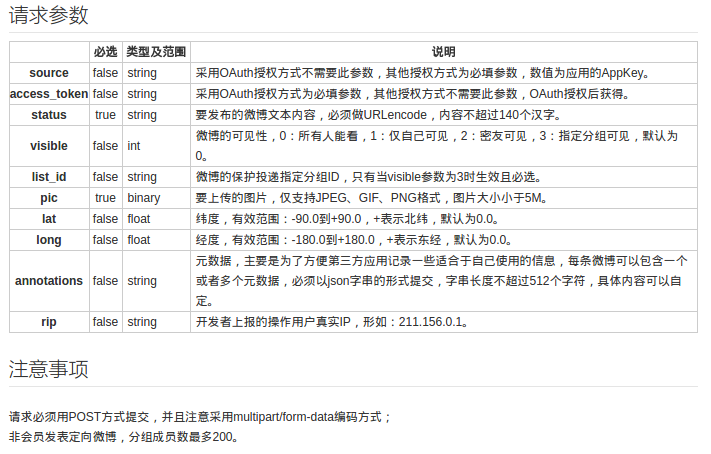 •pic:要发表的图片,采用multipart/form-data编码方式