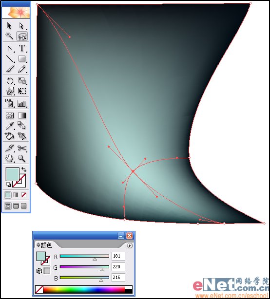 (6)在新添加的曲线上再次点击,即可又产生一条新的曲线和锚点,设置锚点颜色如图RGB分别为“181、220、215”。