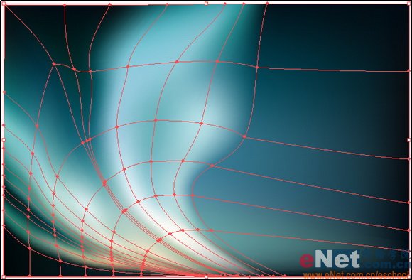 (11)在靠近北极光两侧处添加细节,然后将最外层锚点逐个移动到边缘处,并将边缘处锚点颜色调整为较深的背景色。这样北极光和背景之间就很自然的过度了。