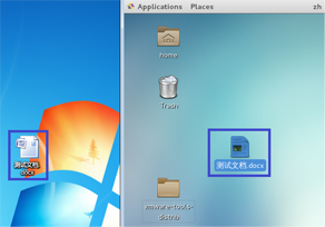 14.选择文件(本例中为"测试文档.docx")并摁住鼠标左键不放,尝试拖动文件到虚拟机。