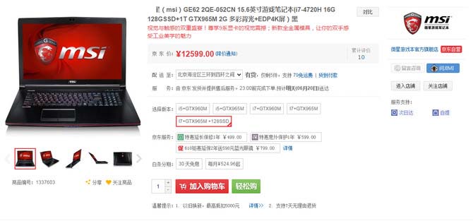 微星GE62其实在配置上完全对得起它的价格。i7-4720HQ处理器、GTX965M独显、128G M2固态+1T机械、16G内存,应付主流的游戏基本没有太多压力。虽然这样的配置不足以说是高端,但是再加上3840×2160分辨率的4K屏似乎就没什么可抱怨的了。七彩背光键盘、杀手网卡、丹拿音响、一键散热这些微星的经典配置一个不少,京东目前报价为12599元,值得考虑。【点击查看详情】