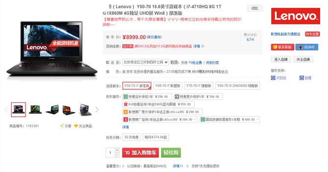 ◆联想(Lenovo) Y50-70 15.6英寸游戏本