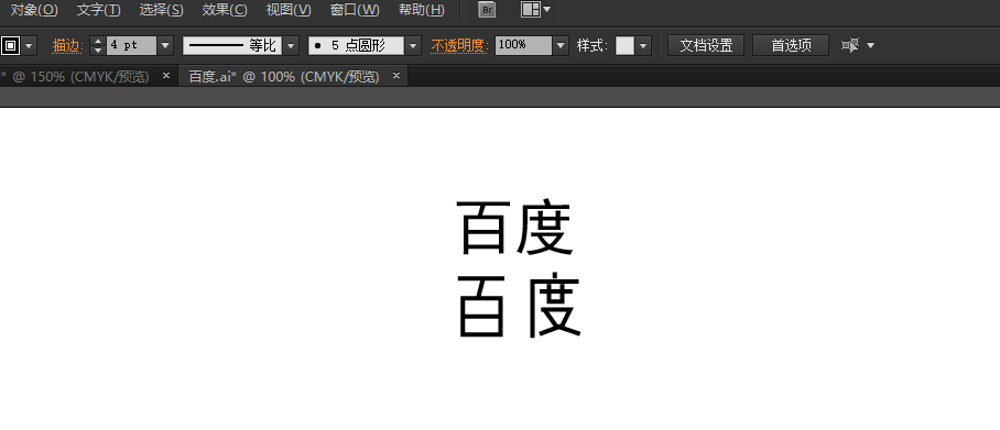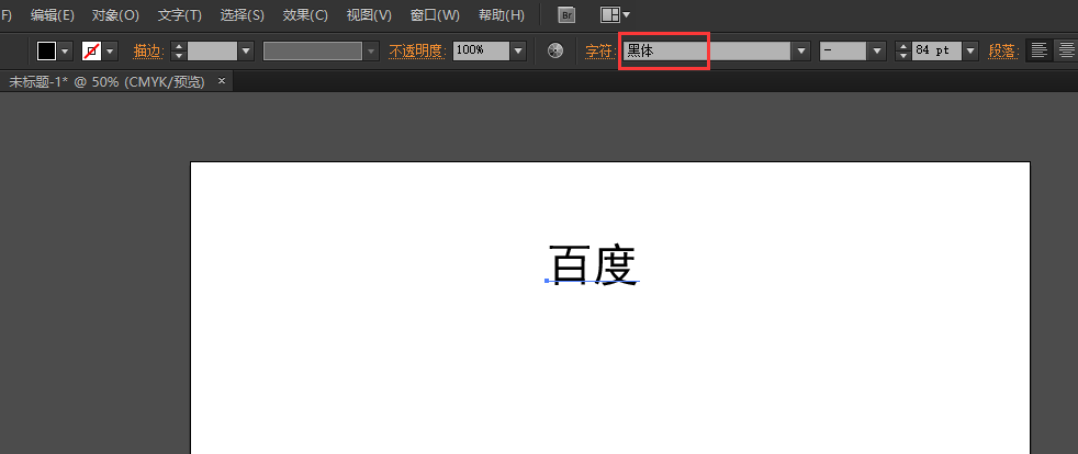 2、以造“百度”两个字为例。选择文字工具,输入“百度”二字,将字号设为合适的值。一般而言,我们可以将字体设置为标准的黑体作为参照。