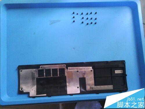 1、找个干净的地方,准备好工具盒装螺丝,随意乱放容易丢。、将笔记本翻到后面底盖,先将电池卸下