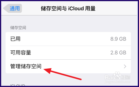 3、进入【存储空间与iCloud用量】,点击【管理存储空间】