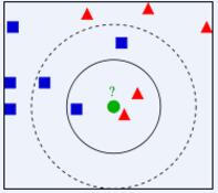 KNN示意图如下所示。(图片来源:百度百科)