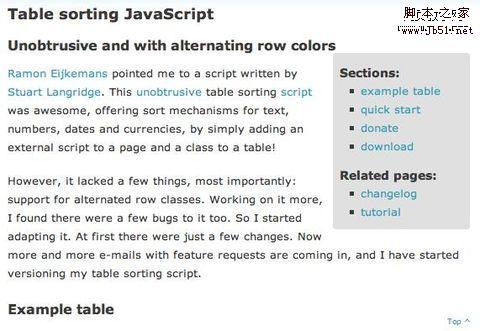 网页包含一个title,内容。 内容可以包含段落,列表,引用,图片和表格。所有这些类型的信息都有自己特定的标记。我们将所有这些标签以标题开始。使用此有关排序表的网页作为例子引出以后要描述的点(不好翻译,原文:Use this page about sortable tables as an example to follow along with for the coming points.)。