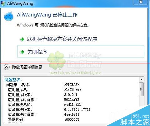 1、以最常用的ww为例,直接打开会出现 “异常代码c0000005”