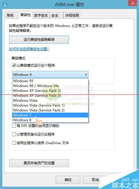 4、勾选 以兼容模式运行这个程序,并尝试选择合适的版本
