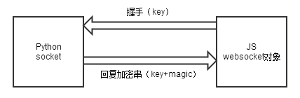 js 处理 websocket 要使用 ws 模块; Python 处理则使用 socket 模块建立 TCP 连接即可,比一般的 socket ,只多一个握手以及数据处理的步骤。