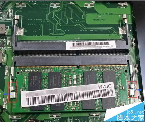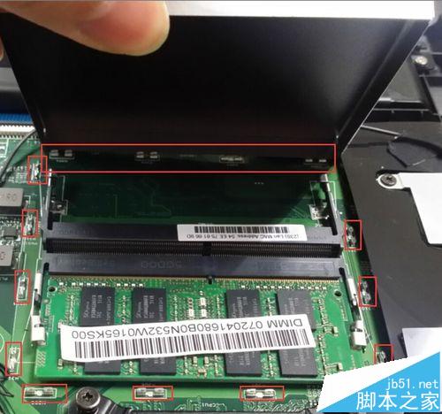 4、合上内存条盖子,合上内存条盖子的时候注意周边14个卡口,要卡到位;盖子边缘正好放在卡口的中间就对了。