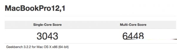 2015款13寸Retina MacBook Pro搭载了英特尔Core i5处理器,主频2.7GHz,单核性能跑分结果为3043,多核跑分结果是6448。