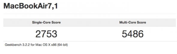 最新的11寸MacBook Air搭载了主频为1.6GHz的英特尔Core i5处理器,单核跑分结果为2753,多核跑分结果为5486。2014款11寸MacBook Air的跑分为单核2430,多核5291。