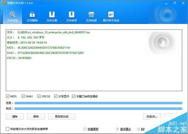 特别提醒:下载后请务必校验文件的SHA1值,确保文件下载正确,没有被劫持篡改。可使用软媒魔方中的软媒文件大师校验文件的SHA1值。如下图所示: