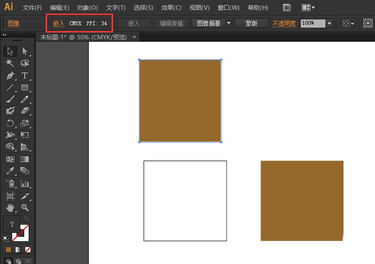 5、这样,下方的矩形就是矢量图形了,而不是上面的位图图片(区别矢量图和图片的方法,是选中位图,上方就会出现“嵌入”的选项)。