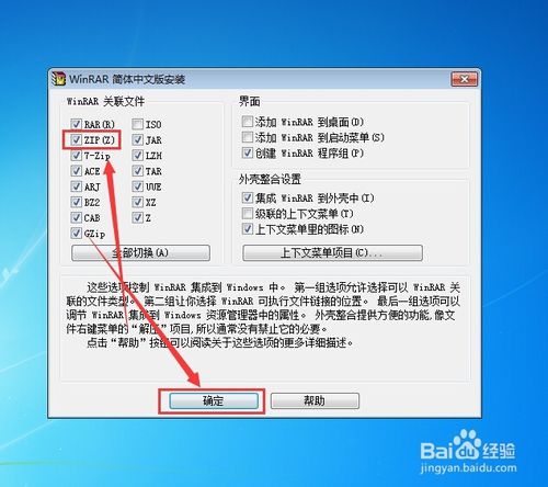 4、这时会弹出一个让你选择安装的程序,你可以只选择ZIP格式,但是个人建议,全部默认即可,我们点击“确定” 如图