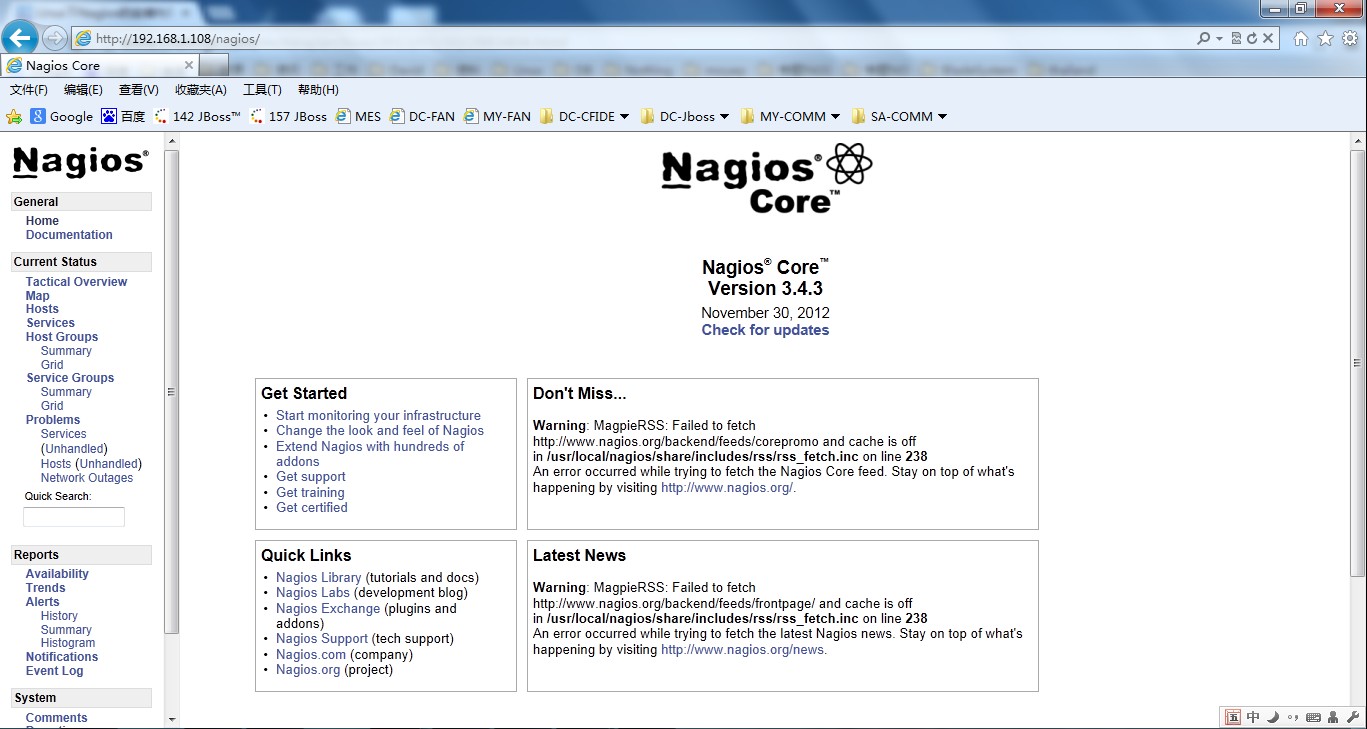 登录Nagios Web监控页http://192.168.1.108/nagios/ 查看相关信息。