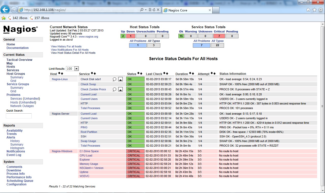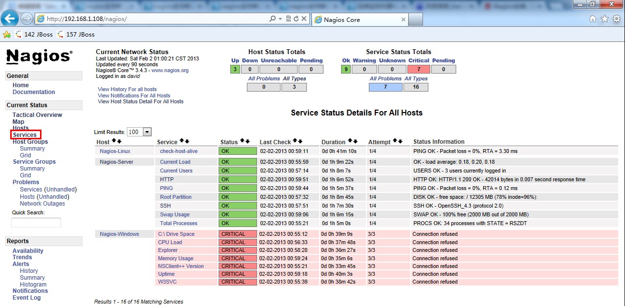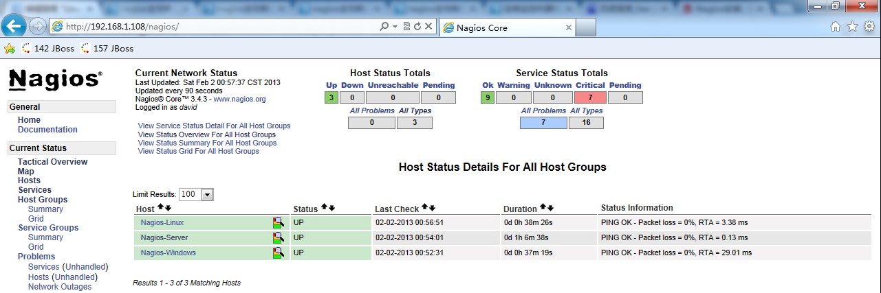 现在打开Nagios Web监控页便可查看到相关信息了。