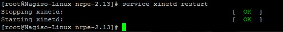 由于本实验中nrpe 是xinetd 下运行的,所以不需要重启服务。