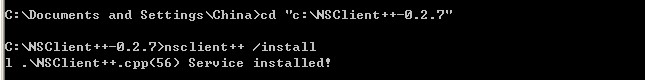 执行nsclient++ /install 进行安装