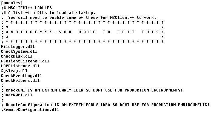 将 [modules]部分的所有模块前面的注释都去掉,除了CheckWMI.dll 和 RemoteConfiguration.dll 这两个。