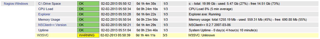 | Nagios-Windows | Windows XP | 192.168.1.113 | NSClient++ |