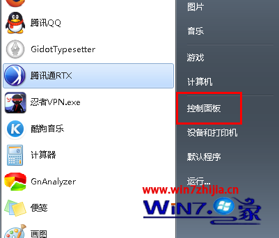 1、首先鼠标点击win7 32位系统下的开始菜单,然后点击控制面板选项;