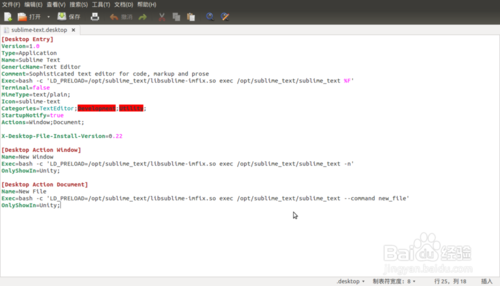 5、为了使用鼠标右键打开文件时能够使用中文输入,还需要修改文件sublime_text.desktop的内容。