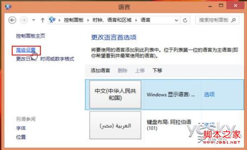 图示:进入Win8语言高级设置
