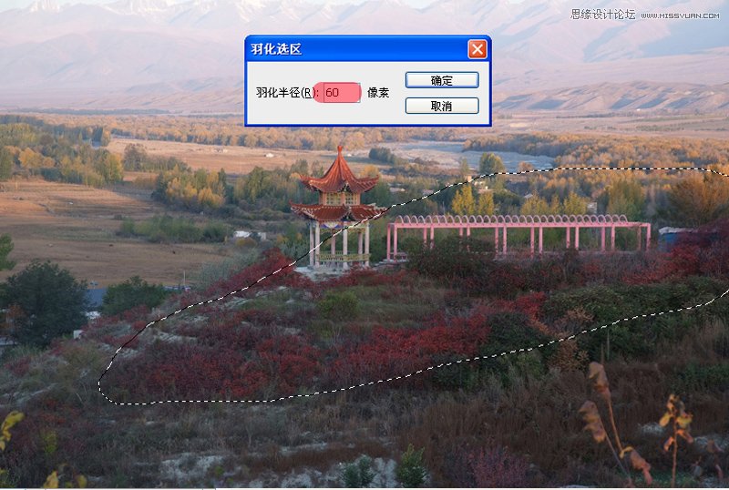2.对选择的范围进行羽化,羽化可以大一点,目的是使做光过渡自然