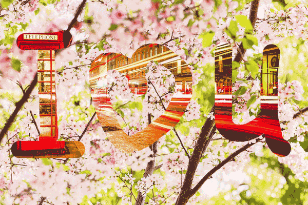 例如这张图片,我们对花朵这个图像应用蒙版,中间黑色的部分会显示下一个图像"车流",白色的会显示本层图像"花朵"。