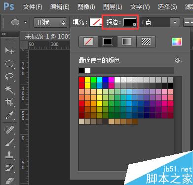 随后修改椭圆工具的“描边”,你想画什么颜色的圆就修改这个属性为什么颜色的,下面就易画黑色的圆举例,选择“描边”的填充色为黑色。