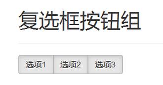 <!DOCTYPE html> <html lang="zh-cn"> <head> <meta charset="UTF-8"> <meta name="viewport" content="width=device-width, initial-scale=1"> <link href="../../css/bootstrap.min.css" rel="stylesheet"> <script src="http://cdn.bootcss.com/jquery/1.11.1/jquery.min.js"></script> <script src="../../js/bootstrap.min.js"></script> <title>复选框按钮组</title> </head> <body> <div class="container"> <div class="page-header"> <h1>复选框按钮组</h1> </div> <div class="btn-group" data-toggle="buttons"> <button class="btn btn-default"> <input type="checkbox">选项1 </button> <button class="btn btn-default"> <input type="checkbox">选项2 </button> <button class="btn btn-default"> <input type="checkbox">选项3 </button> </div> </div> </body> </html>