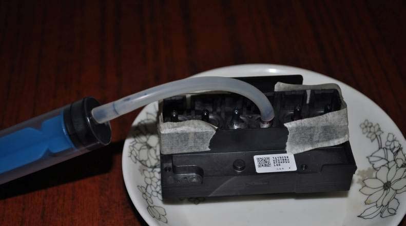 一旦能抽动,应先将里面墨水抽出,取下套在打印头上的软管,用蒸馏水清洗针桶和软管后,再抽取1~3毫升打印头清洗液,轻压入打印头的吸墨柱中,这样放置浸泡几小时后基本上都可以全通了。