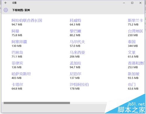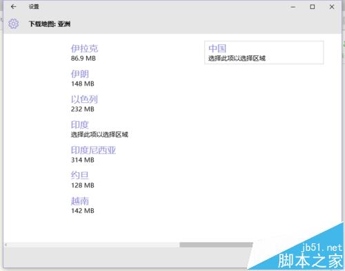 4、点击下载地图,弹出要下载地图的区域选择界面;接下来选择“亚洲”,会出现亚洲所有的国家;