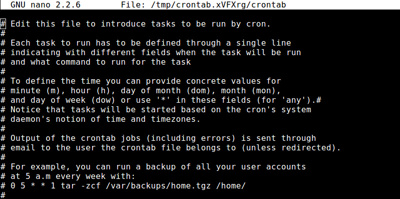 你将会看见一个文本编辑窗口,这里你可以添加或者编辑cron任务。默认使用nono编辑器。