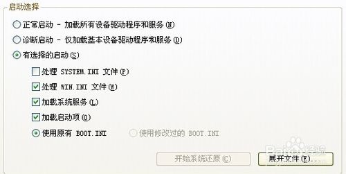 2、在打开的窗口,在第一个“一般”选项卡中选中“选择性启动”看下图。取消“处理System.ini文件”选框(取消前面的打勾),再单击“确定”按钮,看下图。